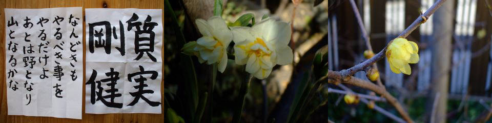 ついでに庭に咲いているスイセンとロウバイを撮影した。